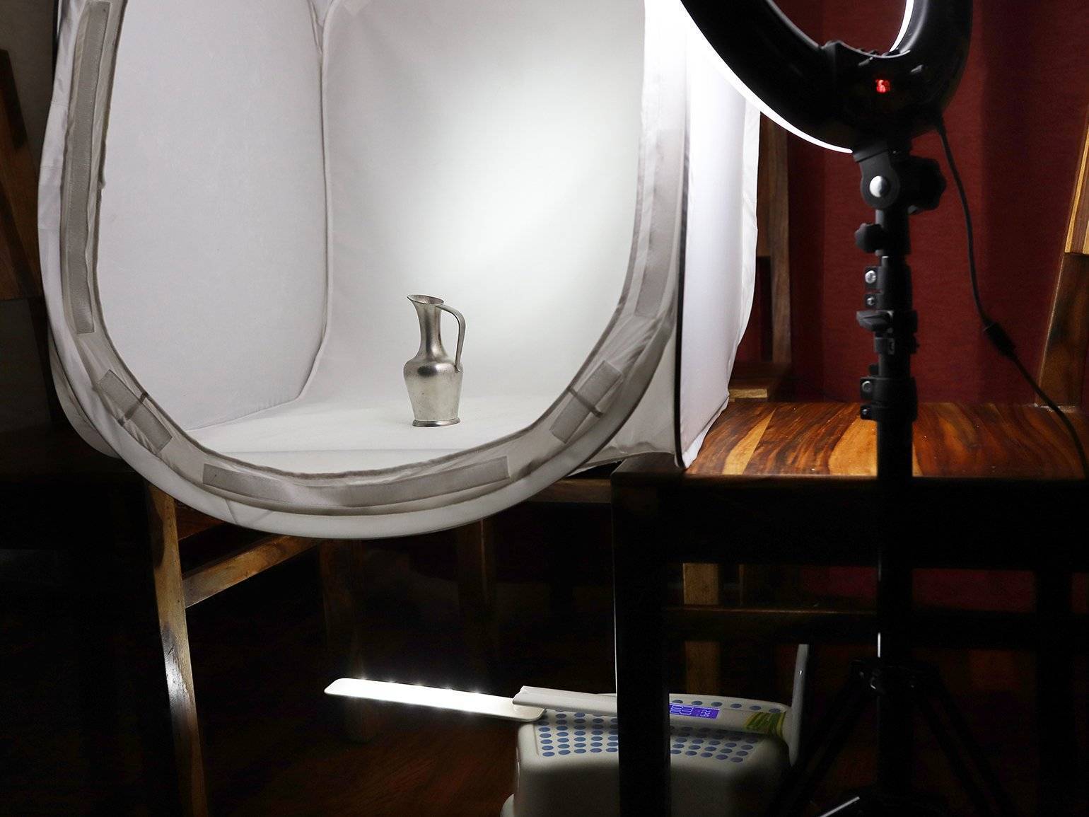 Минимальный набор для профессиональной съёмки состоит из комплекта импульсного освещения, светорассеивающих насадкок и белого предметного стола. Стоит такой набор недёшево, занимает много места и потому оправдан, если предметная съёмка для каталогов — основной источник заработка. Но можно обойтись и меньшими тратами, заодно сэкономив место в квартире. Посмотрим, что потребуется вам.