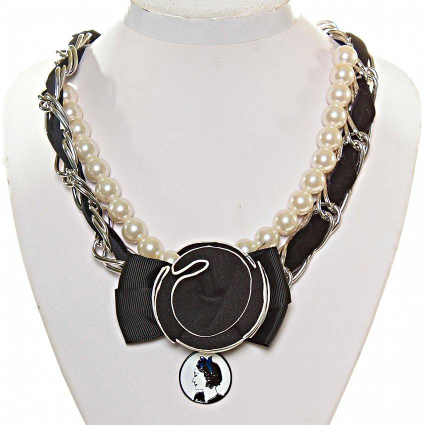 Зафиксировать цепочку с застежкой на колье или пришить аккуратно тонкую атласную ленту требуемой длины. Естественно такое украшение можно декорировать не только бусинами, но и стразами, разнообразными камушками…