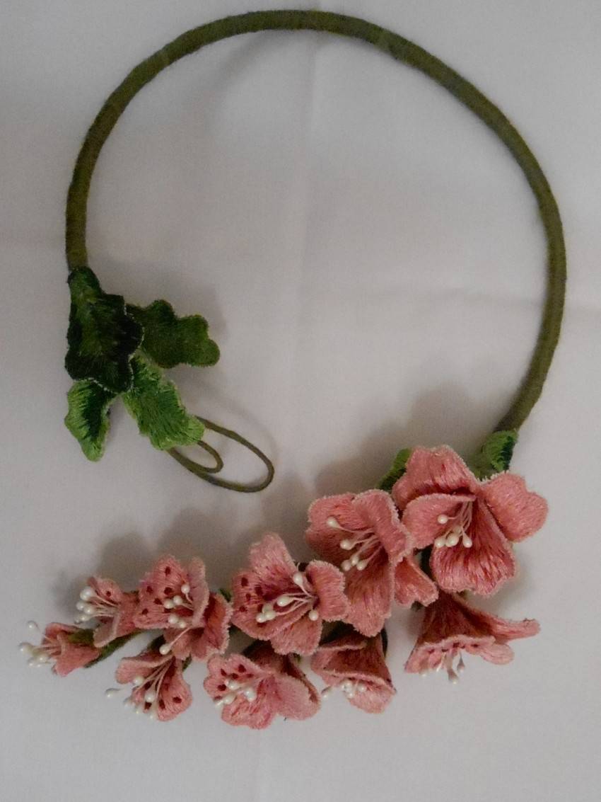 Ну а эти цветочные бусы, сделаны на подобии елочной гирлянды. Только колечки чередуются с цветами.