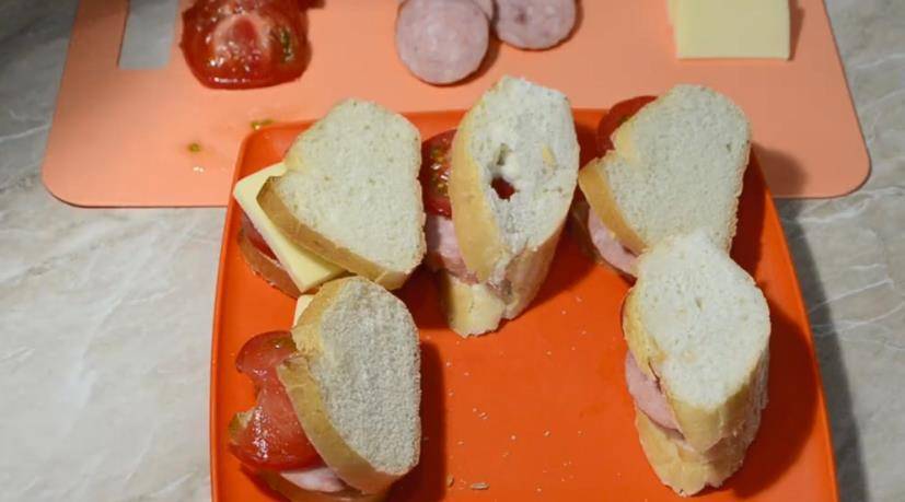 Бутерброды с колбасой и сыром идеально подходят в качестве холодной закуски. Превратить их в горячую закуску реально, если запечь в микроволновой печи в течение нескольких минут. В горячем виде лакомство отменно подойдет к любимому вину, оно получается сытным, но высококалорийным, поэтому не нужно готовить его часто, чтобы не навредить фигуре.