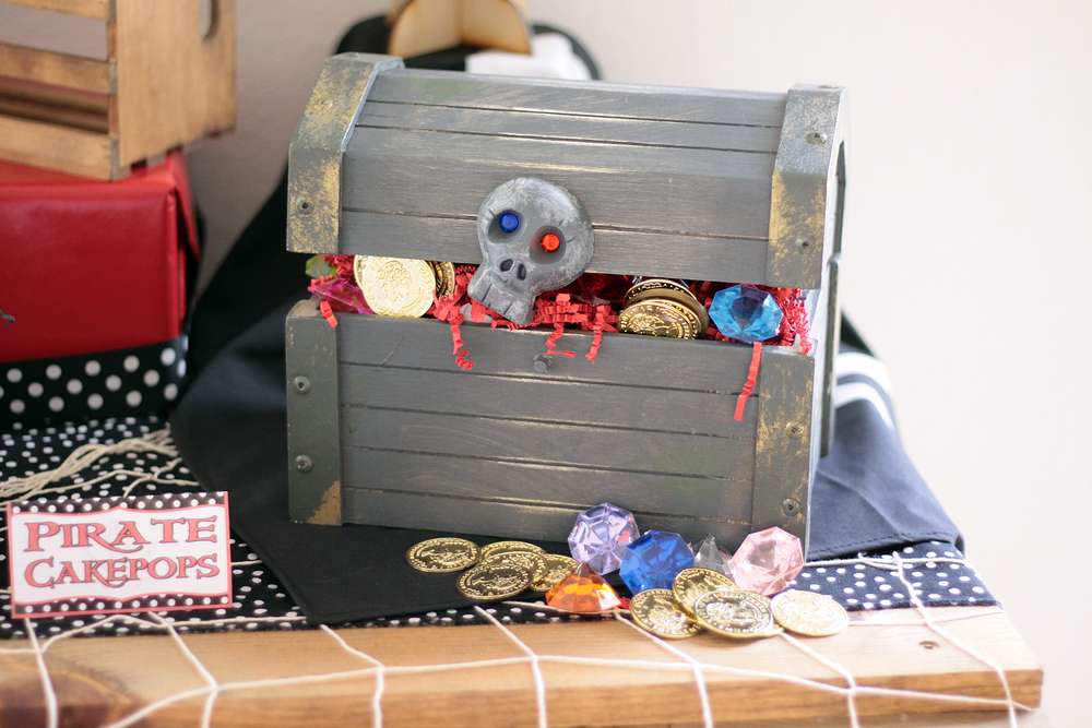 Если кто-то из детей страдает пищевой аллергией, скажем, на шоколад или орехи, стоит заменить сокровища другими видами сладостей, к примеру, зефиром или леденцами. Если пиратская вечеринка планируется нескоро, можно самостоятельно изготовить сундук для клада.
