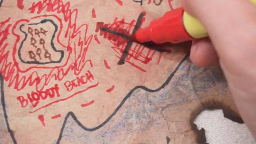 Обнаружение заветного клада — самый яркий момент поисков. В финальной точке пути мы поставили большой красный крест и нарисовали сундук с сокровищами.
