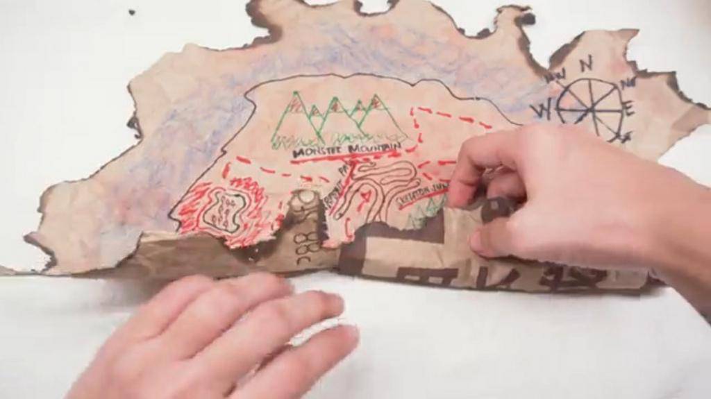 Чтобы подготовиться к приключению, элементы добычи или дальнейшие подсказки прячут у каждого ориентира. К примеру, если на карте обозначена «гора монстров», у ее основания можно оставить пакетик со сладостями. Так дети поймут, что они на верном пути. Если хочется сделать карту максимально простой без подсказок, можно написать их на небольших клочках бумаги и выдавать ребятам на каждом преодоленном ими участке пути.