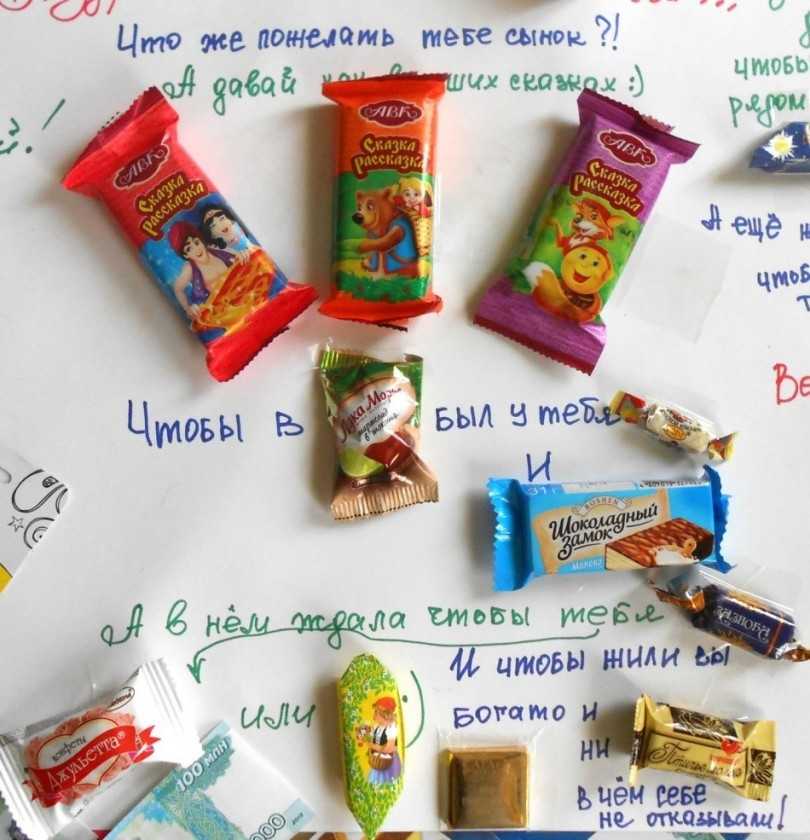 Хорошая идея для поздравления. Такой огромный подарок может быть изготовлен детьми школьного возраста. Включаем свой талант и фантазию. На плакате можно поместить поздравительные слова, стихи, картинки.