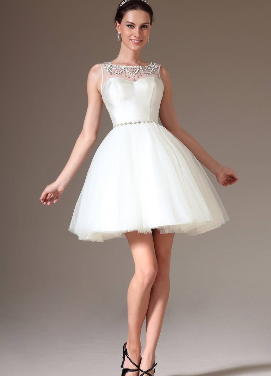Пышное белое короткое платье на выпускной-2022 смотрится воздушно и свежо