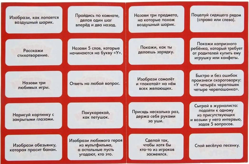 Я никогда… — участникам раздается одинаковое количество фишек (можно заменить любыми одинаковыми предметами). Первый участник начинает игру, он произносит «Я никогда не…» и рассказывает о том, чего он никогда не делал. Участники, которые делали такое бросают по фишке в центр стола. Побеждает тот, кто наберет больше фишек.