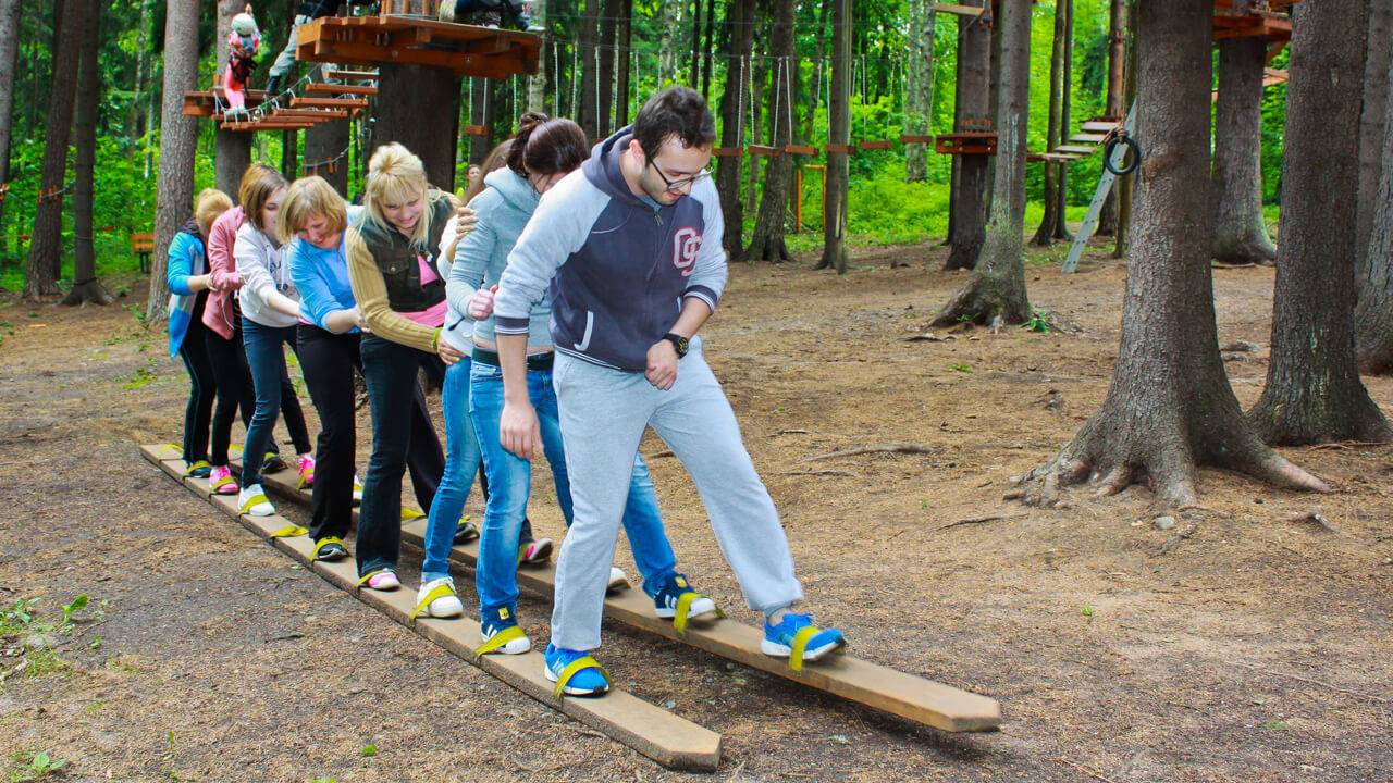 - Приключенческие игры. Спортивные, интеллектуальные соревнования, квесты, тренинги, верёвочные этапы – лучший выбор для нестандартного тимбилдинга. Вы сможете лучше узнать коллег, проявить лидерские качества. Совместный отдых и решение задач сплотит команду, создаст атмосферу взаимовыручки среди сотрудников.