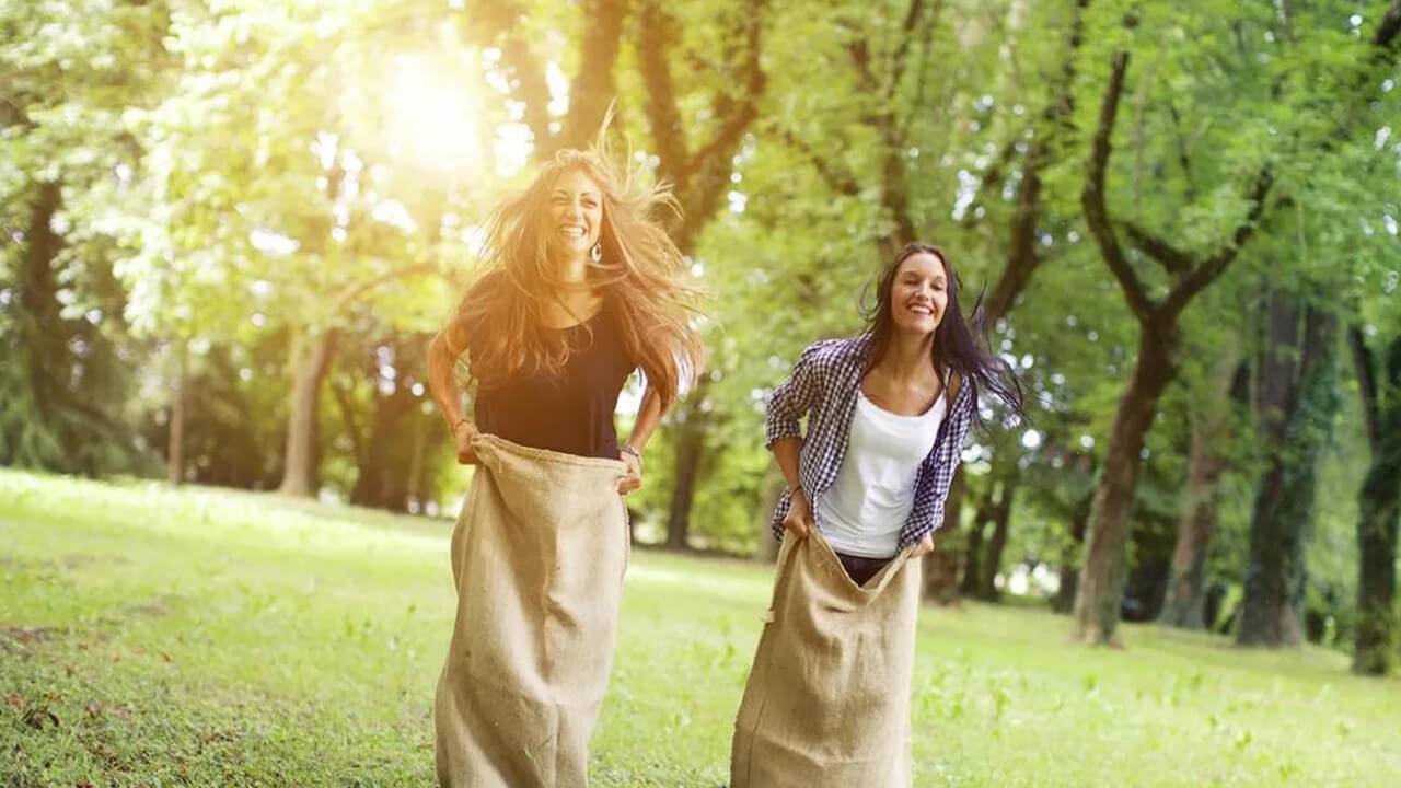 - Бег в мешках. Проверенный способ поднять настроение участников тимбилдинга – организовать традиционный бег в мешках. Все участвующие в соревновании надевают мешки на ноги и, придерживая их руками, начинают движение к финишной черте.