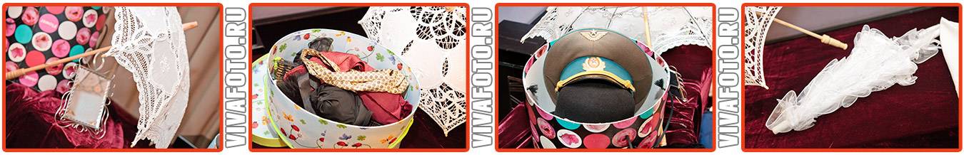 Самый доступный, быстрый и недорогой вариант костюмированной фотостудии — это свет, фон, аксессуары, стилизация дизайном и обработкой. Привозим отдельные артефакты нужного исторического периода, накидки, шляпки, вуалетки, трубки, перчатки, зонтики, веера, бусы и множество других аксессуаров для формы и для настроения. Всё относительно недорого, но очень аутентично и атмосферно. Это единственный костюмированный вариант, подходящий для крупных мероприятий.