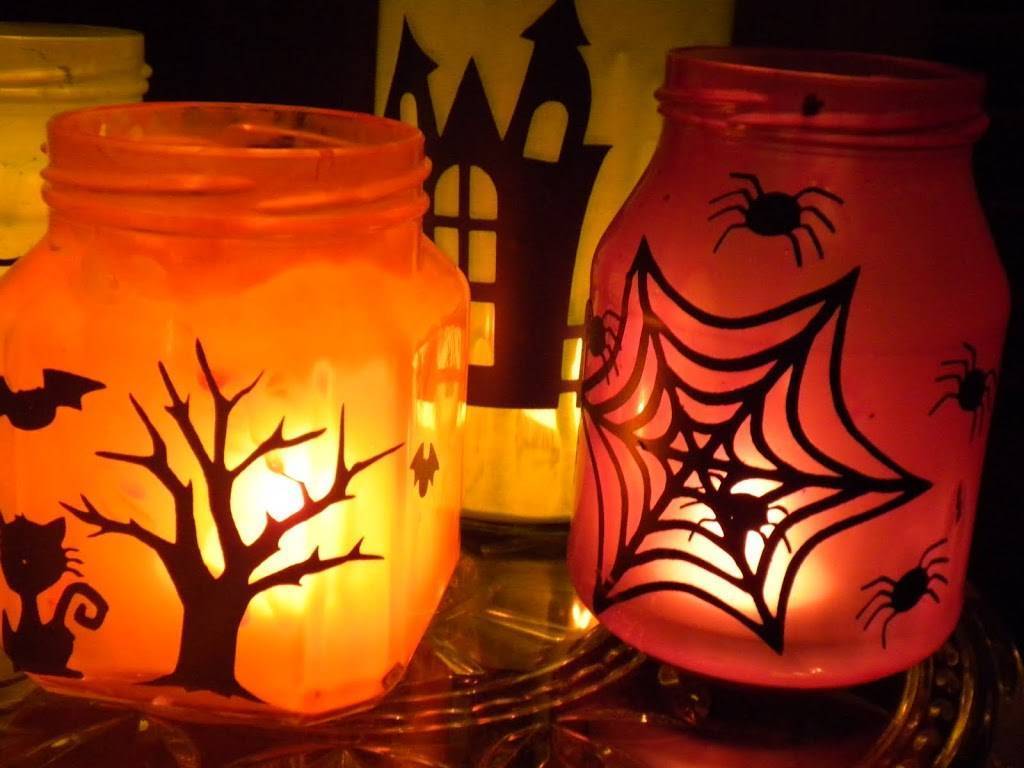 - картонные силуэты пауков, черных котов, замков с привидениями;