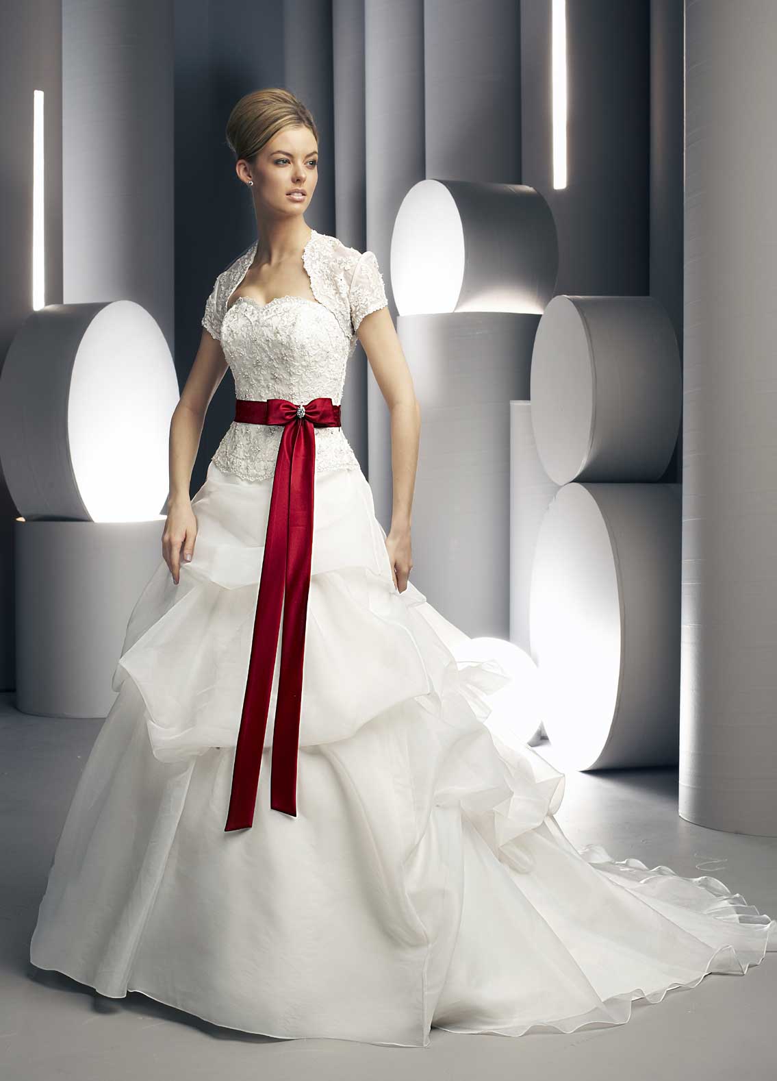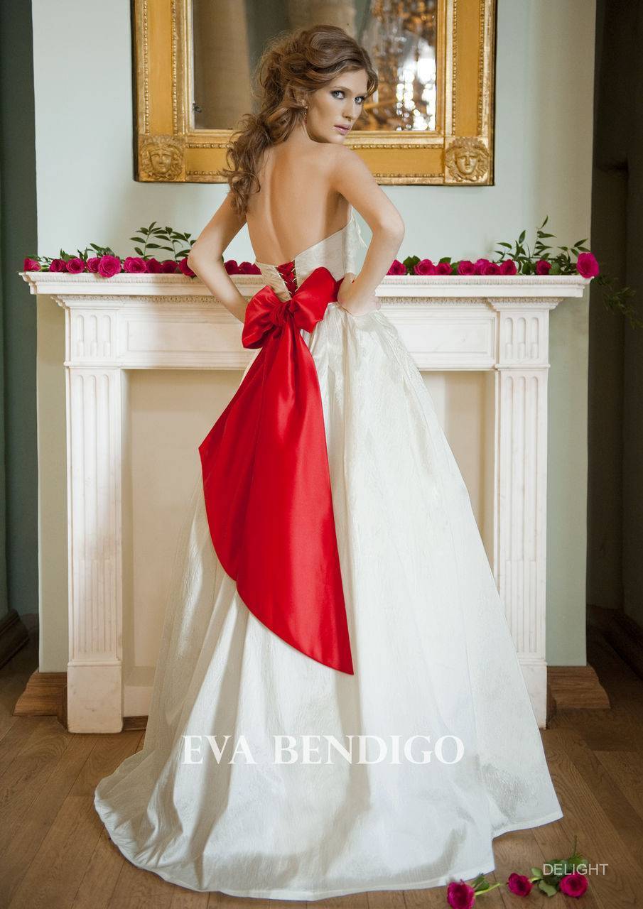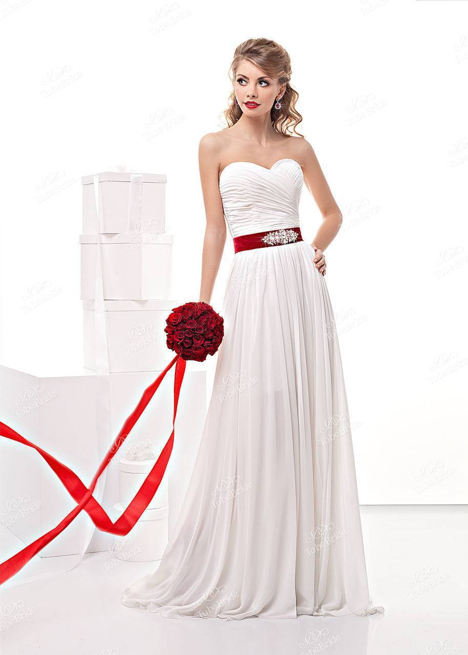 Свадебное платье с красным бантом и поясом