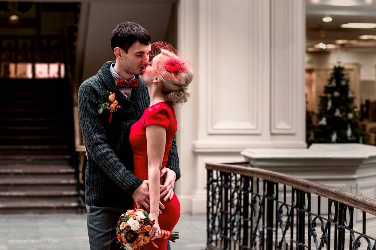 Невеста в красном будет гармонично выглядеть рядом с женихом, облаченным в черный или белый костюм, дополненный красными аксессуарами. Для полноценного лука будущего мужа идеально подойдет красный галстук, такой же платок, аккуратно расположившийся в кармане пиджака. Его можно заменить бутоньеркой. Если вместо костюма выбран смокинг, можно заменить ремень широким красным поясом. Продумайте эти важные детали, чтобы они перекликались с платьем, тогда пара будет гармонично дополнять друг друга.