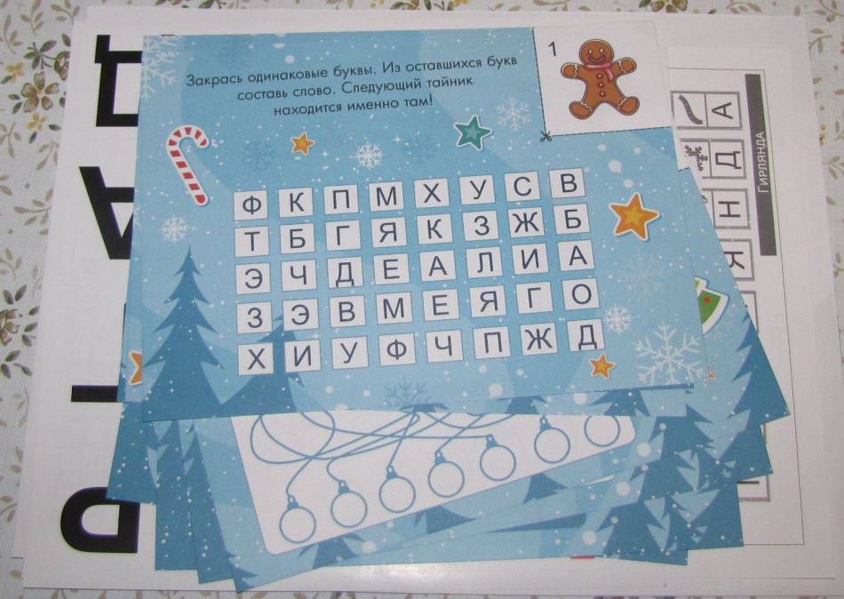 - В интернете сейчас огромное количество необычных, новогодних картинок, например, с елкой, снеговиками, гирляндами, на которые можно нанести надписи в Пейнте, или даже в Ворде. Это стандартные программы, которые имеются на всех компьютерах, и работать ими умеет даже пользователь с начальным уровнем. Остается лишь распечатать карточки с заданиями, и рассказать про условия квеста или конкурса.