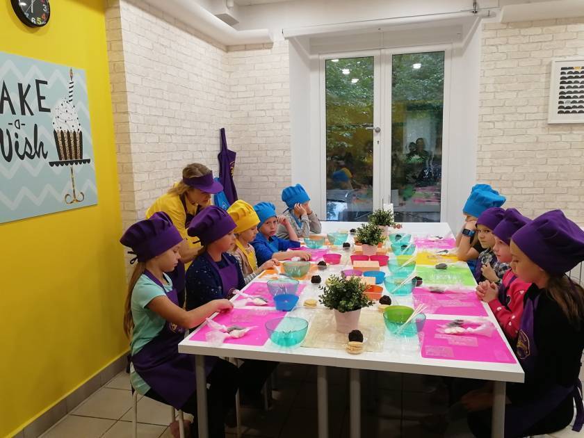 “На мастер-классе дети делают 4 кондитерских шедевра: маршмеллоу в шоколадной глазури, бисквитное пирожное со сливочным кремом, кейк-боллс в кокосовой стружке и фигурный шоколад!”