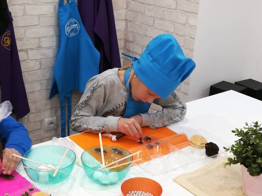 “По программе мастер-класса дети должны были сделать четыре вида десерта: маршмеллоу в шоколадной глазури, бисквитное пирожное со сливочным кремом, кейк-боллс в кокосовой стружке и фигурный шоколад. Считаю, что это просто счастье для детей сделать сразу столько сладостей! Очень хорошая задумка!”
