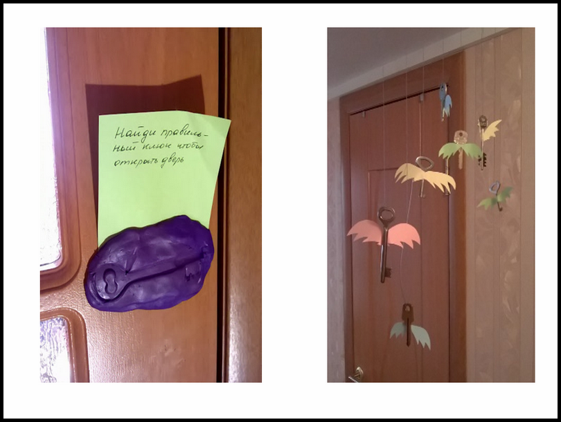 Дверь в заветную комнату закрыта на ключ. Чтобы ее открыть, нужно подобрать ключ по слепку. Оттиск можно сделать при помощи пластилина или гипса.