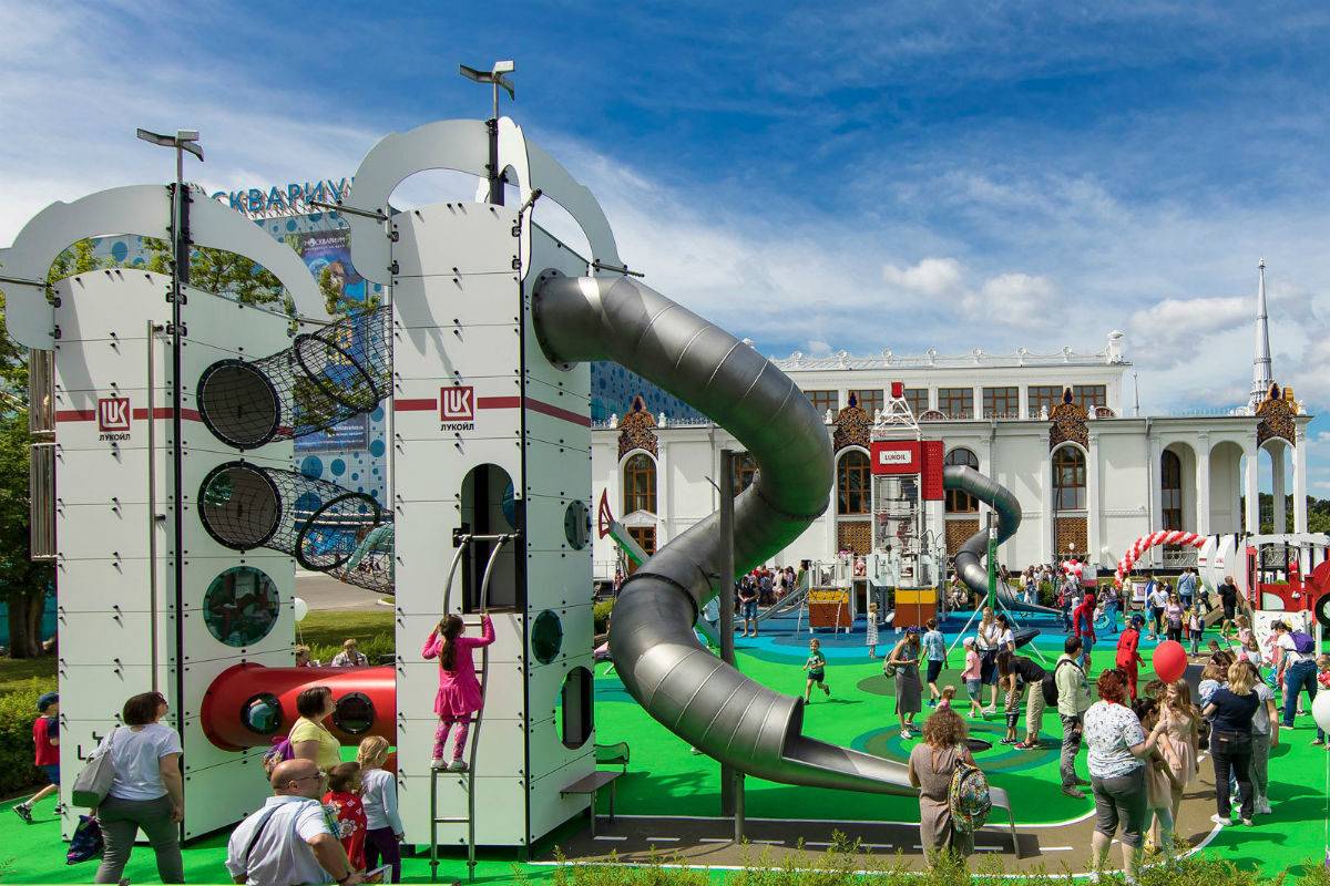В июне 2019 года около павильона ВДНХ №25 «Нефть» открылась детская площадка, построенная нефтяной компанией «Лукойл». Как несложно догадаться, вдохновением для нее послужил образ нефтезавода с его вышками и трубами. По словам создателей, игровое пространство призвано познакомить детей с полным циклом работы вертикально интегрированной нефтегазовой компании: геологоразведкой, добычей, переработкой, транспортировкой и сбытом. «Нефтегородок» состоит из более чем 20 игровых элементов – из них четыре стилизованных игровых комплекса с горками и элементами для лазания: «Морская нефтедобывающая платформа», «Нефтеперерабатывающий завод», «Бензовоз», «Гоночный болид», а также батуты, качалки и интерактивные панели.