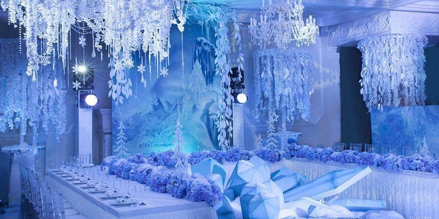 Эта тематика по мотивам знаменитой сказки. Используйте в декоре стеклянные и блестящие детали, имитирующие лед, а также зеркала и белый цвет.