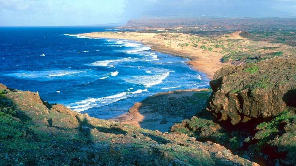 - Остров Молокаи – ещё не сильно развитый остров с точки зрения туризма. Дома тут не выше, чем пальмы, инфраструктура на слабом уровне. Зато, этот остров известен своей природой. Например, самыми большими прибрежными скалами на планете, или самым большим песчаным пляжем на архипелаге. Сюда регулярно водят экскурсии. Самих отдыхающих на острове немного, всё же. Когда летишь на Гавайи хочется комфорта, тут же есть определенные проблемы с качественным размещением – отели небольшие, да и много частного сектора.