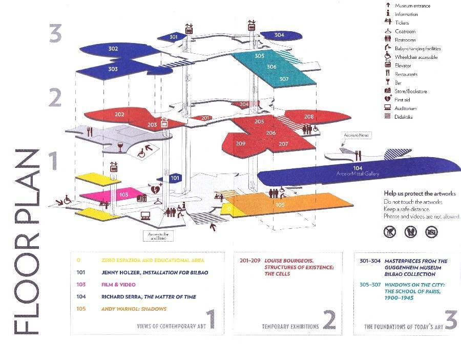 Чтобы сохранить статус самого авангардного музея Испании, мало выставить авангардистов, нужно использовать принципиально иные формы подачи информации. Поэтому в музее Гуггенхайма очень много интерактивных работ, с которыми посетители могут «вступать в контакт», и конечно, много видеоарта и инсталляций.