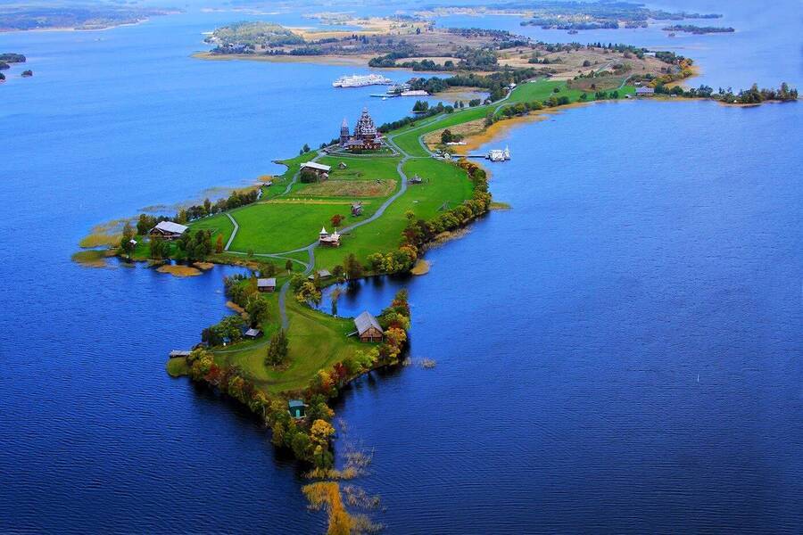 Кижи расположены недалеко от Петрозаводска.