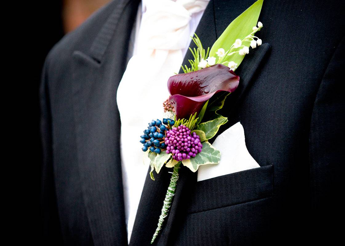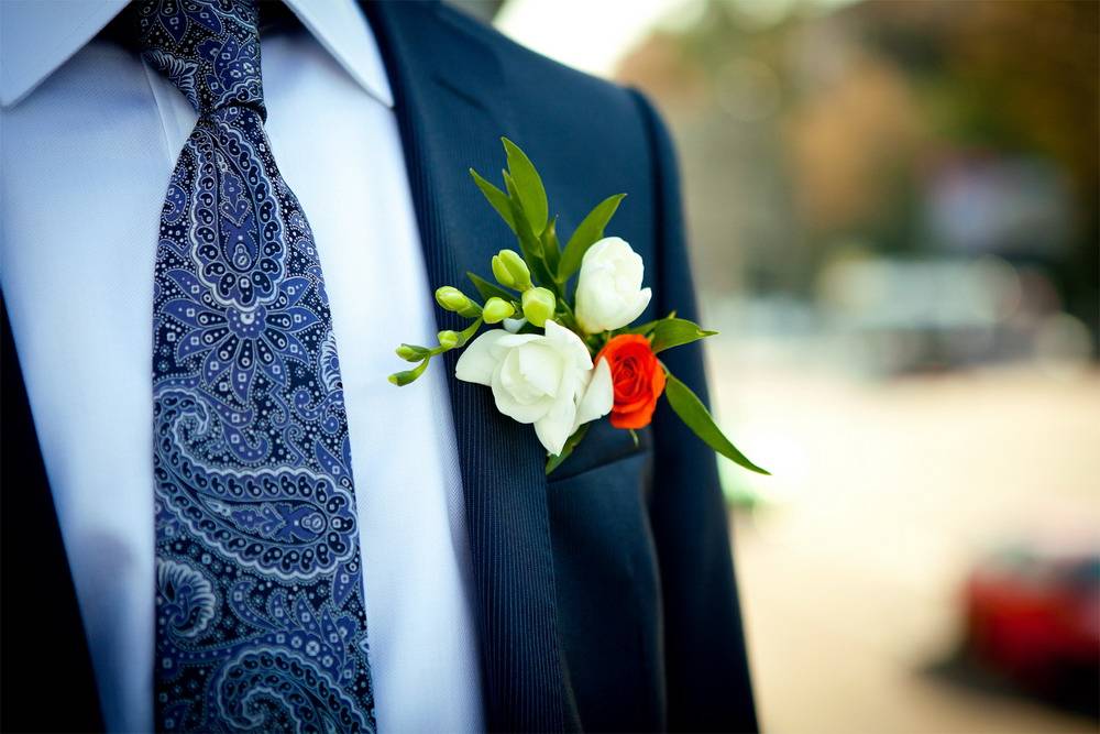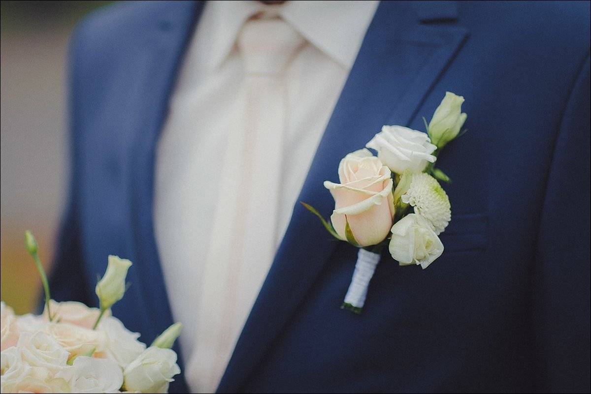 Бутоньерка – это один цветок или небольшая флористическая композиция, прикрепляемая к петлице на мужском костюме. Изготавливают бутоньерку из живых цветов, искусственных бутонов, листьев, декоративных веточек, ягод. Ее размер – не длиннее десяти сантиметров, включая цветоножку.