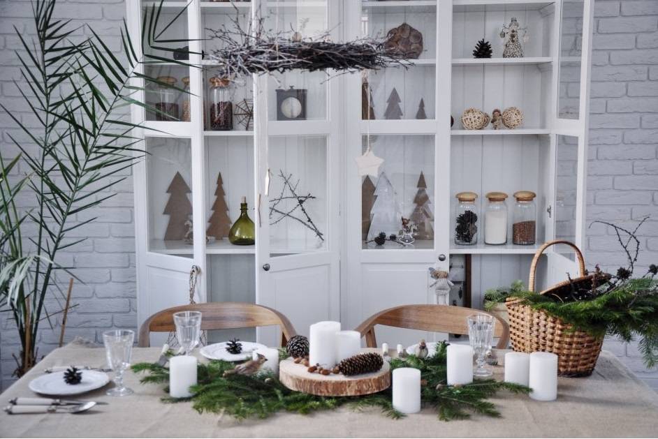Экостиль предполагает использование атрибутов из натуральных материалов. Тут подойдут для использования деревянные подставки, восковые фигурки, глиняные вазочки или прочие мелочи непромышленного производства. Также к этому стилю привязана просчитанная цветовая гамма, состоящая из белого, коричневого, зеленого и серебристого цветов.