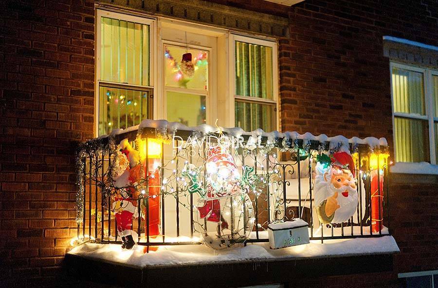 Выбор праздничных аксессуаров зависит от вида лоджии – открытая или закрытая. Если помещение остекленное, украшать можно чем угодно – вешать гирлянды, раскладывать на подоконнике хвойные веточки или расставлять живые елочки в горшках, фигуры Деда Мороза, Снегурочки, имитировать снег.