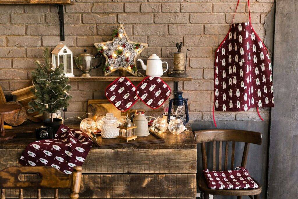 - кухонный текстиль с праздничным орнаментом – полотенца, рукавицы, фартук.