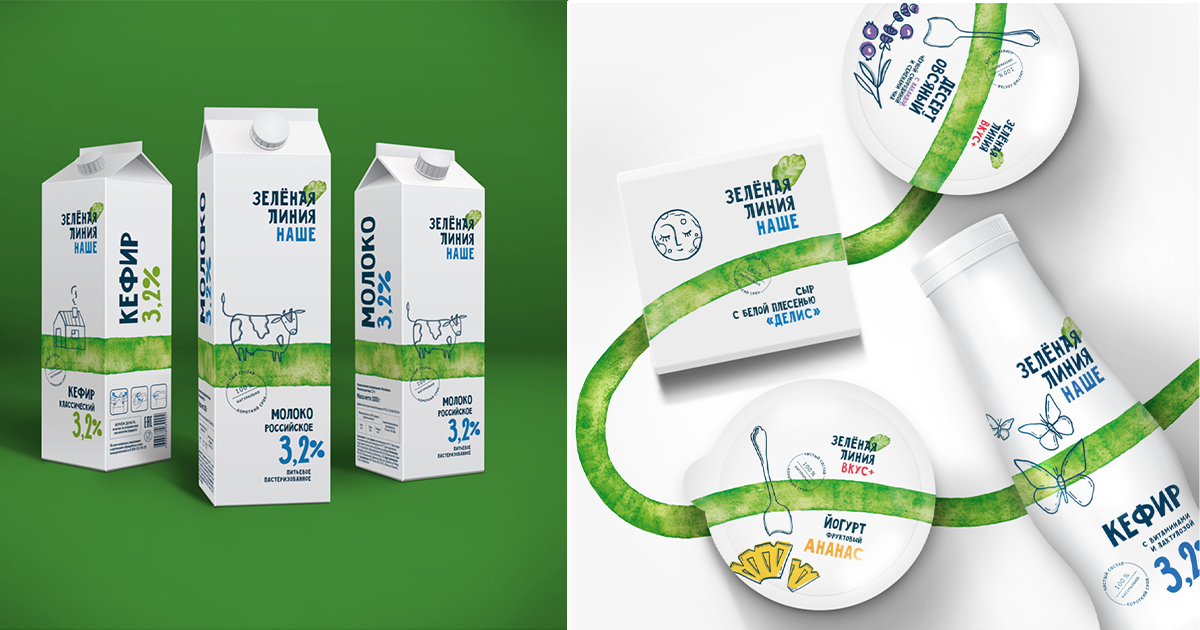 Теперь продукцию «Зеленой линии» можно будет узнать по простым, но очаровательным рисункам и главному элементу — зеленой линии, придающим ощущение тепла и натуральности.