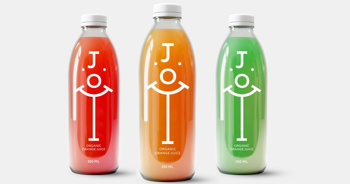 Проект ученицы Британки, Анастасии Юдиной — творческое упражнение. JOY — вымышленный бренд детских соков. Радостная прозрачная упаковка передает насыщенный свежий вкус ингредиентов.