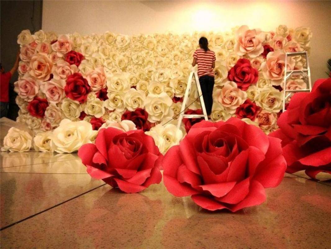 Большие цветы из бумаги для оформления зала: как сделать своими руками