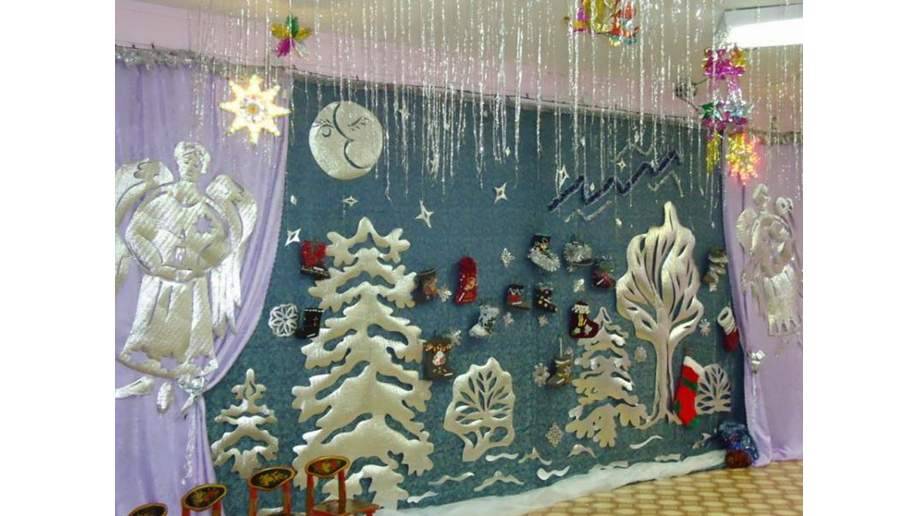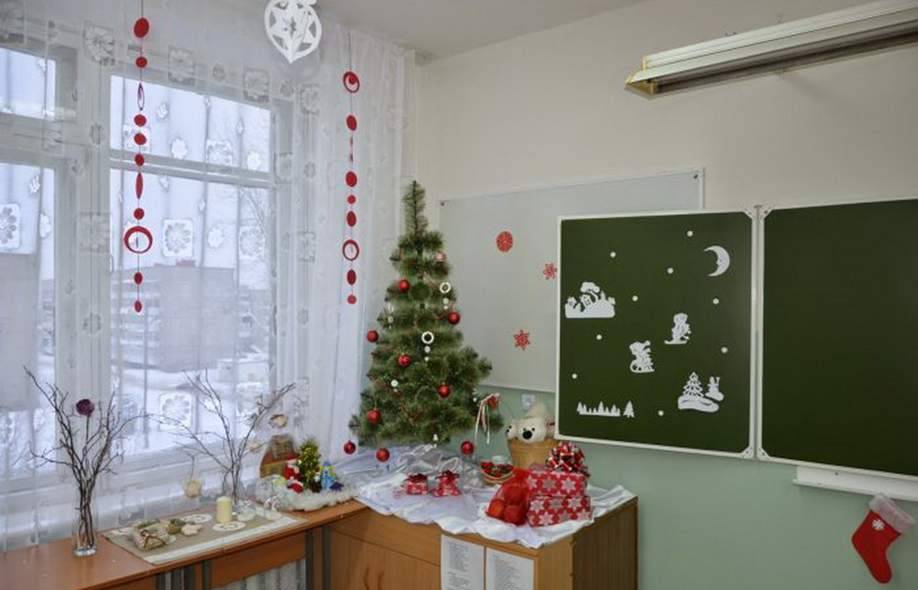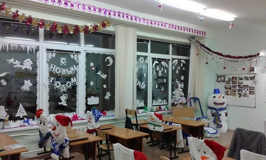 Каждая прикрепленная бусинка, как и декор из пленки, должны хорошо держаться, чтобы младшие школьники не поскальзывались на всем этом. Вешать новогодние украшения для школы, особенно на высокие стены и потолки, должны взрослые или дети под присмотром, ведь любое неловкое движение может привести к травме.