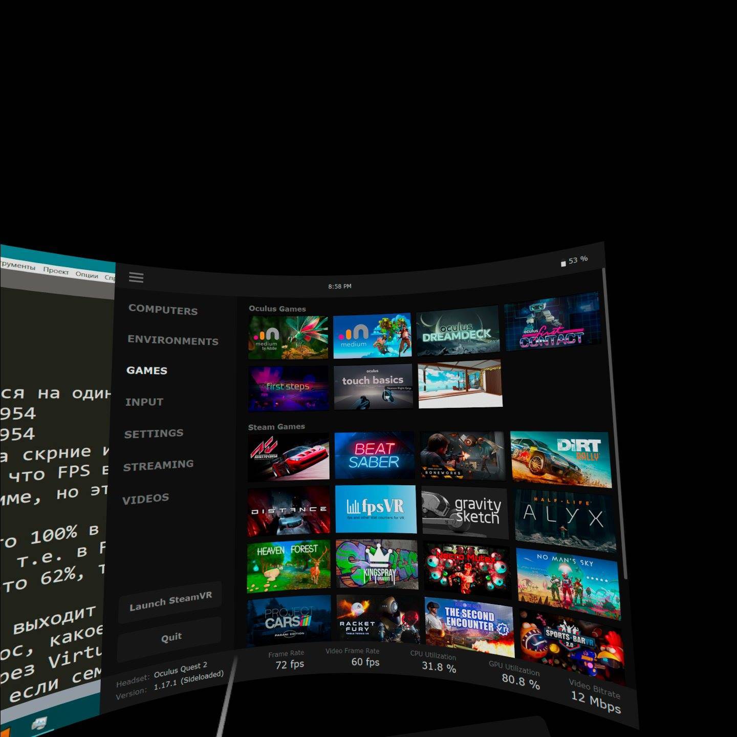 Работа Oculus Quest 2 через Virtual Desktop (по беспроводу с ПК)