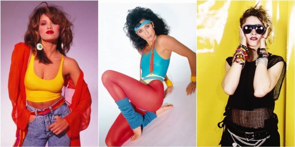 Период 80-х — эра, которую можно кратко охарактеризовать одним словом — «слишком». В моде был спортивный стиль, яркие цвета, блёстки, стразы и длина мини.