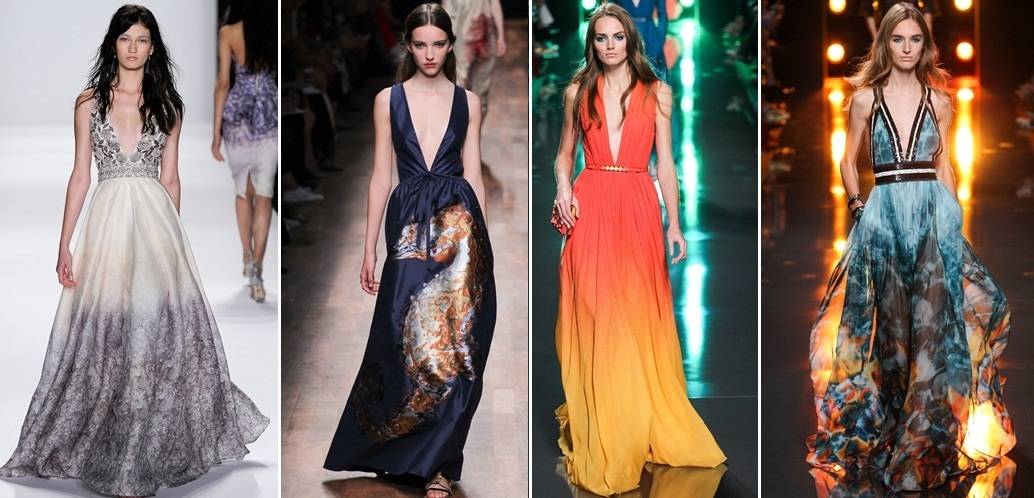 Какое бы платье вы ни выбрали, обратите внимание на вырез. Сейчас модным является острый треугольный вырез, иногда довольно глубокий, даже на платьях для выпускного вечера