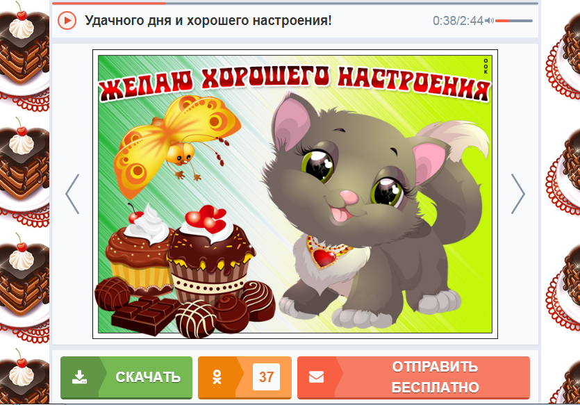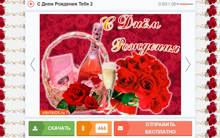 Получить ссылку на красивые плейкасты, причем абсолютно бесплатно, можно на otkritkiok.ru. По желанию воспользуйтесь ссылкой на музыкальную открытку или скачайте только картинку без музыкального сопровождения.