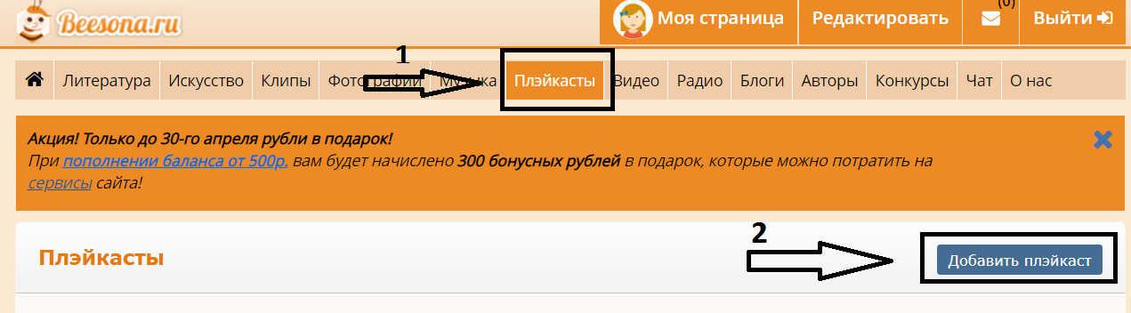 На популярных сайтах для создания плейкаста, например, beesona.ru, требуется предварительная регистрация.