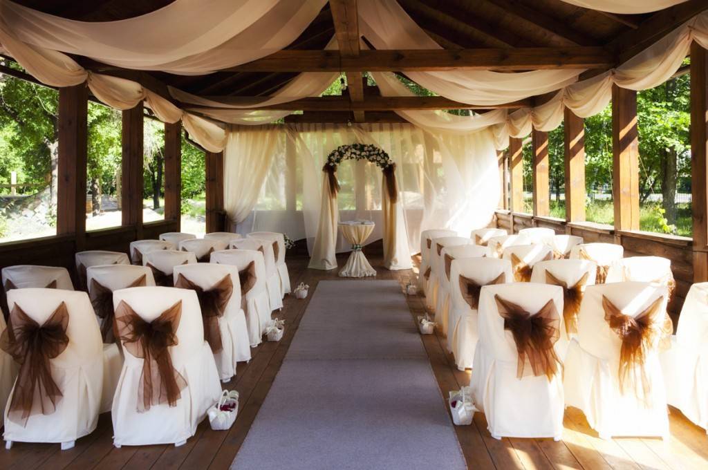 Вы можете как выбрать место проведения самостоятельно, так и воспользоваться услугами профессионалов, которые посоветуют подходящие варианты. Помните, что территория со всех сторон должна выглядеть идеально, и к ней должен быть хороший подъезд. Место, по возможности, должно быть тихим, так чтобы проведению церемонии бракосочетания не мешали посторонние шумы. На случай плохой погоды обязательно предусмотрите перенос церемонии под крышу.