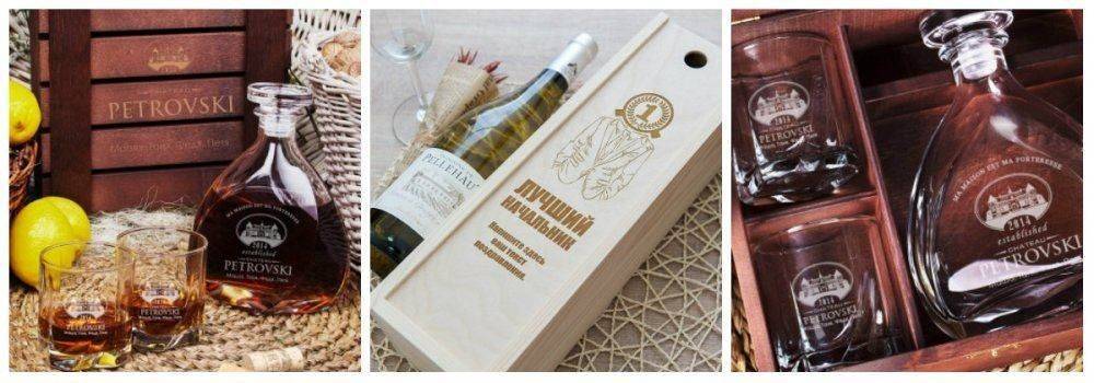 Алкоголь в подарок начальнику — это классика жанра. Хороший коньяк или виски, а может быть, французское вино — выбор зависит непосредственно от предпочтений именинника. Но чтобы ваша бутылочка не отправилась, молча, к своим собратьям по бару, такой подарок просто необходимо разнообразить. Самый простой вариант — это коробка с дарственной надписью. Более дорогой и добротный вариант — та же коробочка с индивидуальной гравировкой, но вместо алкоголя в ней бокалы с графином. Подробнее>>