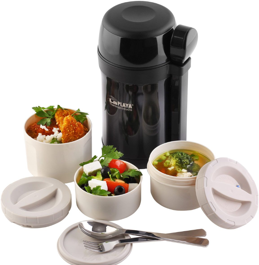 Три пластиковых контейнера для еды: герметичный для супа и два контейнера для вторых блюд и закусок, чехол с ложкой и вилкой из нержавеющей стали. Все вместе – вакуумный термос для питания рыбака без отрыва от процесса. |