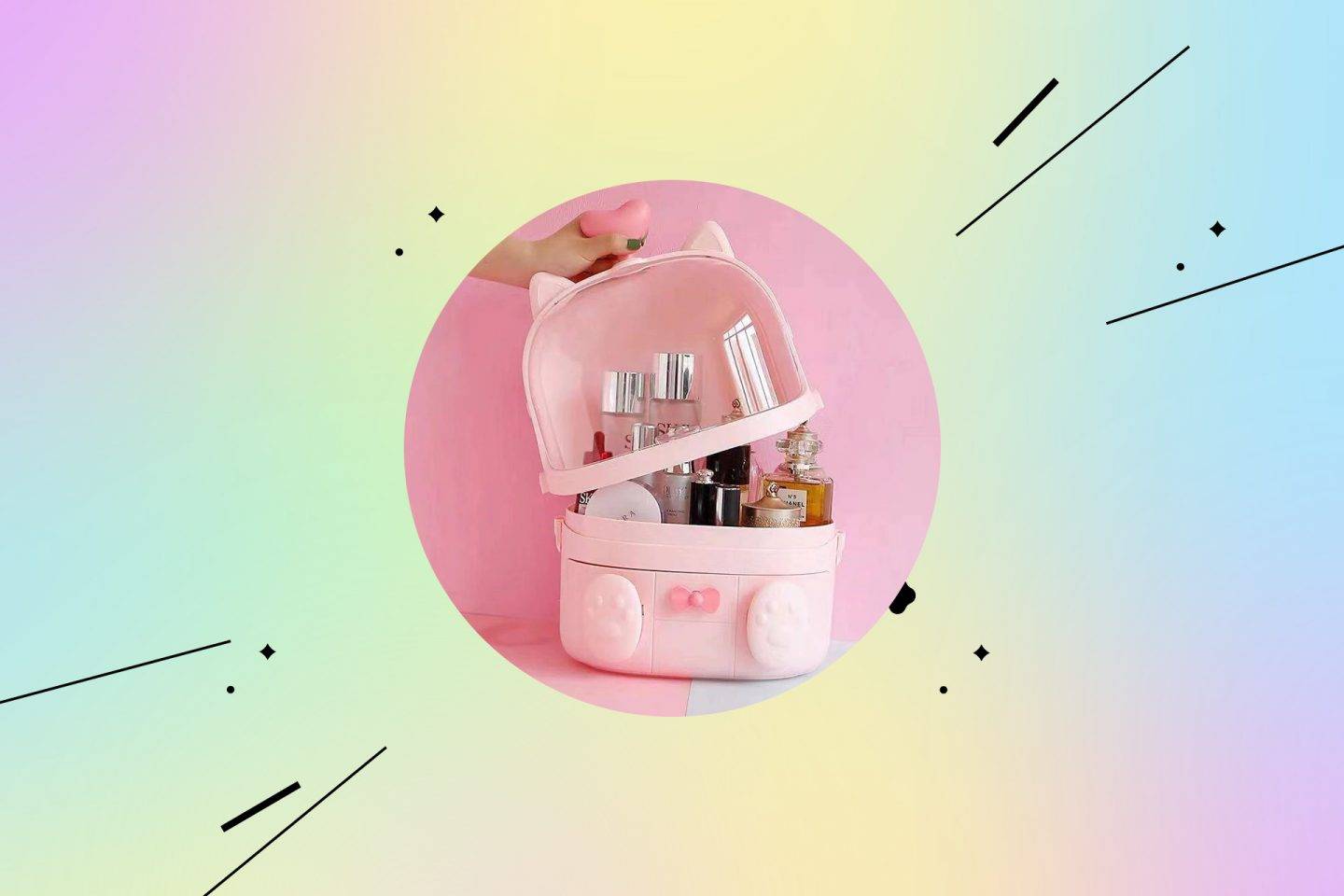 Большой плюс органайзера в том, что его легко мыть. А ещё он непроницаем для воды и пыли. Высота изделия — 39 сантиметров, ширина основания — 28,5 сантиметров. При заказе можно выбрать из трёх цветовых вариантов: розовый, бело-розовый и голубой.