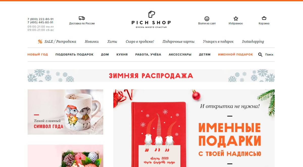 Подпишитесь на рассылку электронной почты от лучшего магазина подарков и получайте самые свежие новости о скидках и акциях. В Москве PichShop может недорого упаковать купленные товары в праздничную упаковку. Услуга обойдется клиенту в 500 руб. Подарочная карта с номиналом 2000 руб. станет хорошим выходом, если не уверены, что лучшие подарить на Новый год.