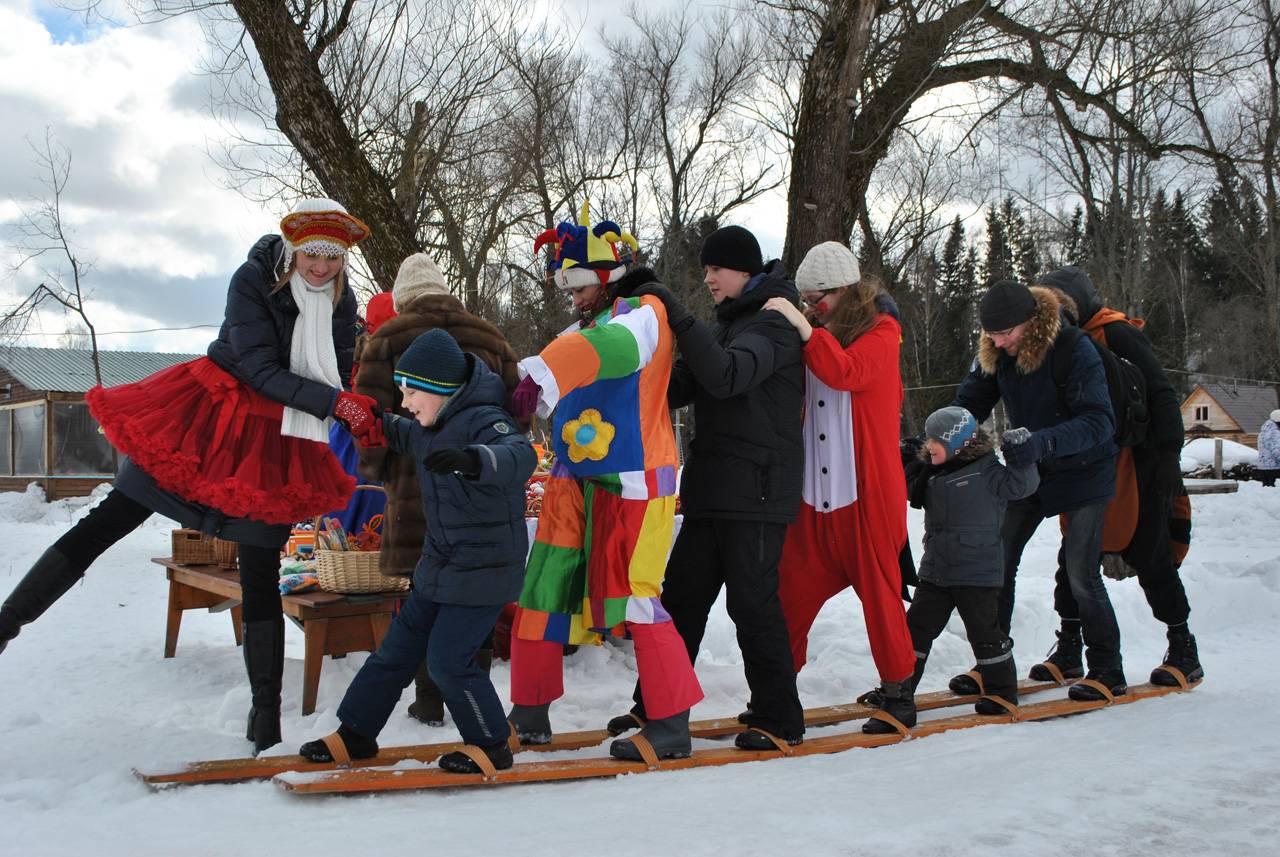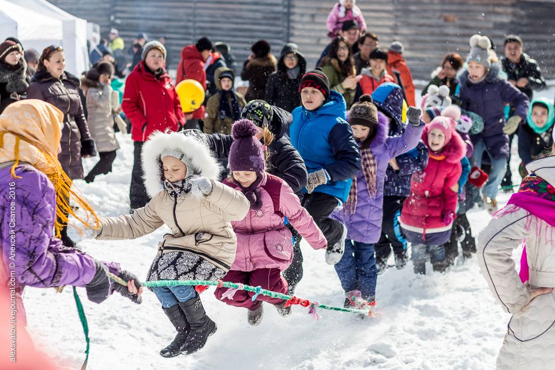 Так, катались по специально созданным, залитым горкам, считалось, что чем больше, дальше человек проедет, тем длиннее лен уродит в его угодьях. Молодежь раскачивалась на качелях, высота полета также определяла успешность года. Мужчины проявляли молодецкую удаль кулачными боями, лазанием по ледяным столбам, перетягиванием канатов.