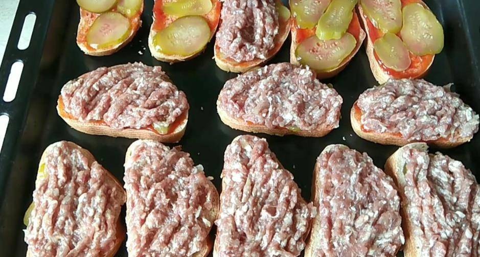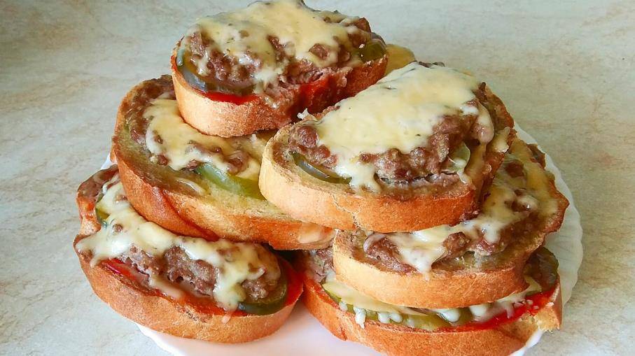 Горячие бутерброды в духовке с фаршем и сыром