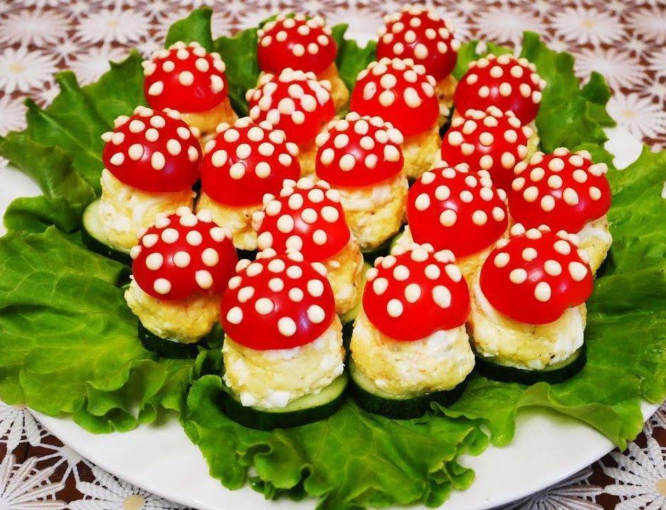 Грибочки из огурца, сыра и помидора