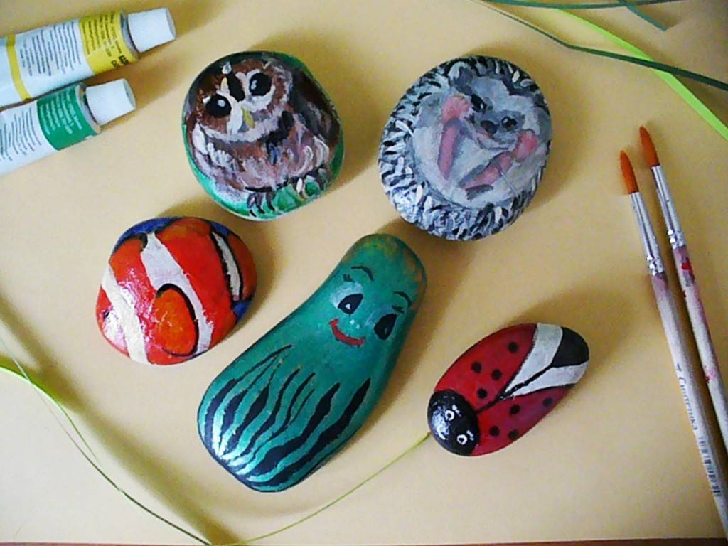 Используйте данный вид поделки на занятиях для детей. Технику росписи камней можно использовать на выставках детского творчества, либо же как увлекательную домашнюю игру по созданию декоративных картинок для интерьера комнаты.