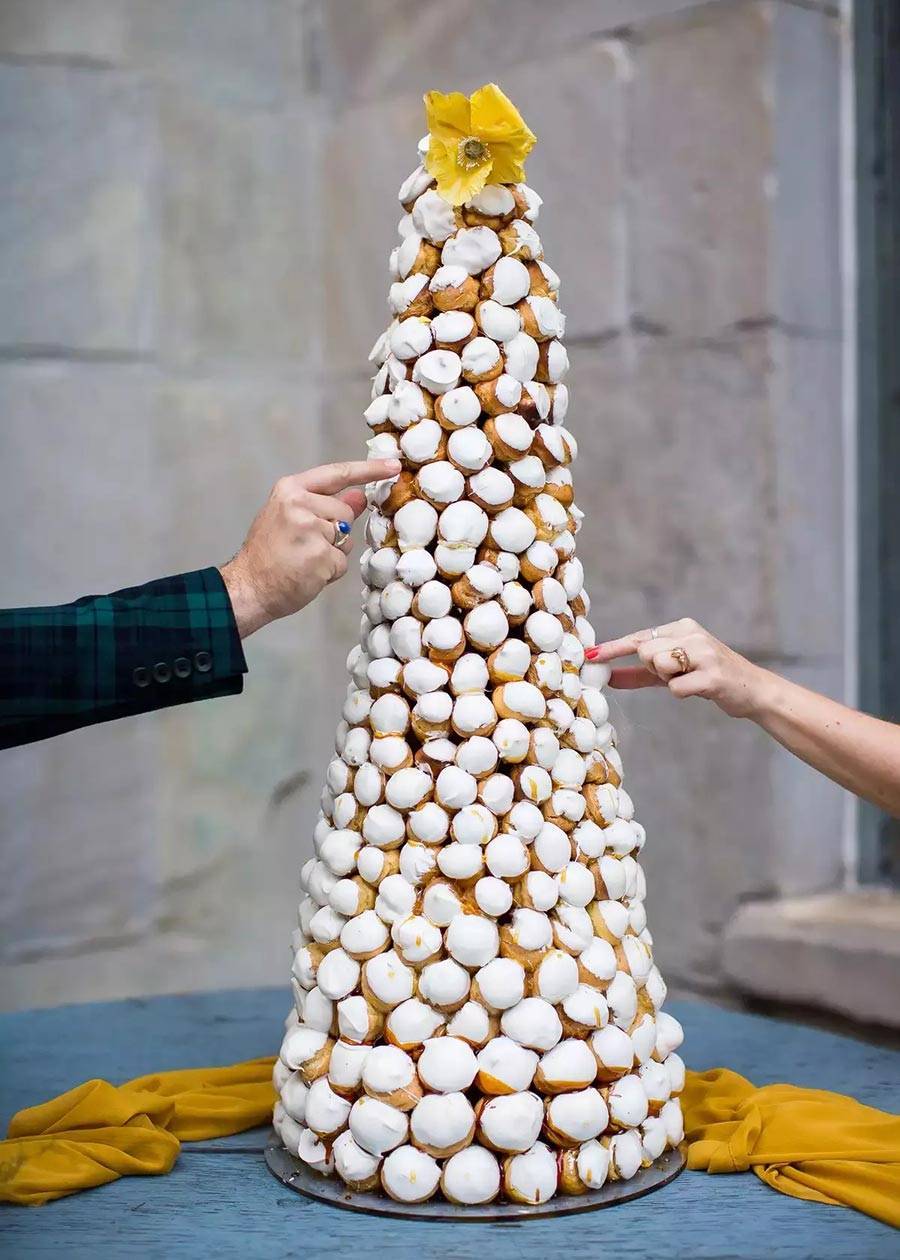 - Свадебный торт — король стола на любом свадебном банкете. Его украшают цветами и фигурками, портретами молодожёнов и съедобными лентами. Сама традиция пришла к нам из древности. В средневековой Англии было принято, приходя на свадьбу, приносить с собой пироги, которые ставились на стол один поверх другого, создавая кучу, а молодожёны должны были поцеловаться поверх этой сладкой горы. Оттуда и пошёл обычай делать свадебный торт многоуровневым. Чем выше торт — тем больше достаток будущей семьи.