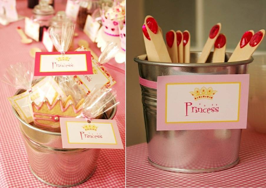 Декорации. Если заранее приложить руки, можно изготовить модель замка или пары замковых башен из упаковочного картона, украсив их лентами, стразами и блестками. Идеи и выкройки для такой поделки можно взять в Интернете.А если вы хорошо владеете техникой рисования, можно нарисовать на картоне фигуры одной или нескольких принцесс в полный рост: они не только украсят комнату и пригодятся в процессе конкурсов, девочкам еще и будет приятно с ними сфотографироваться!