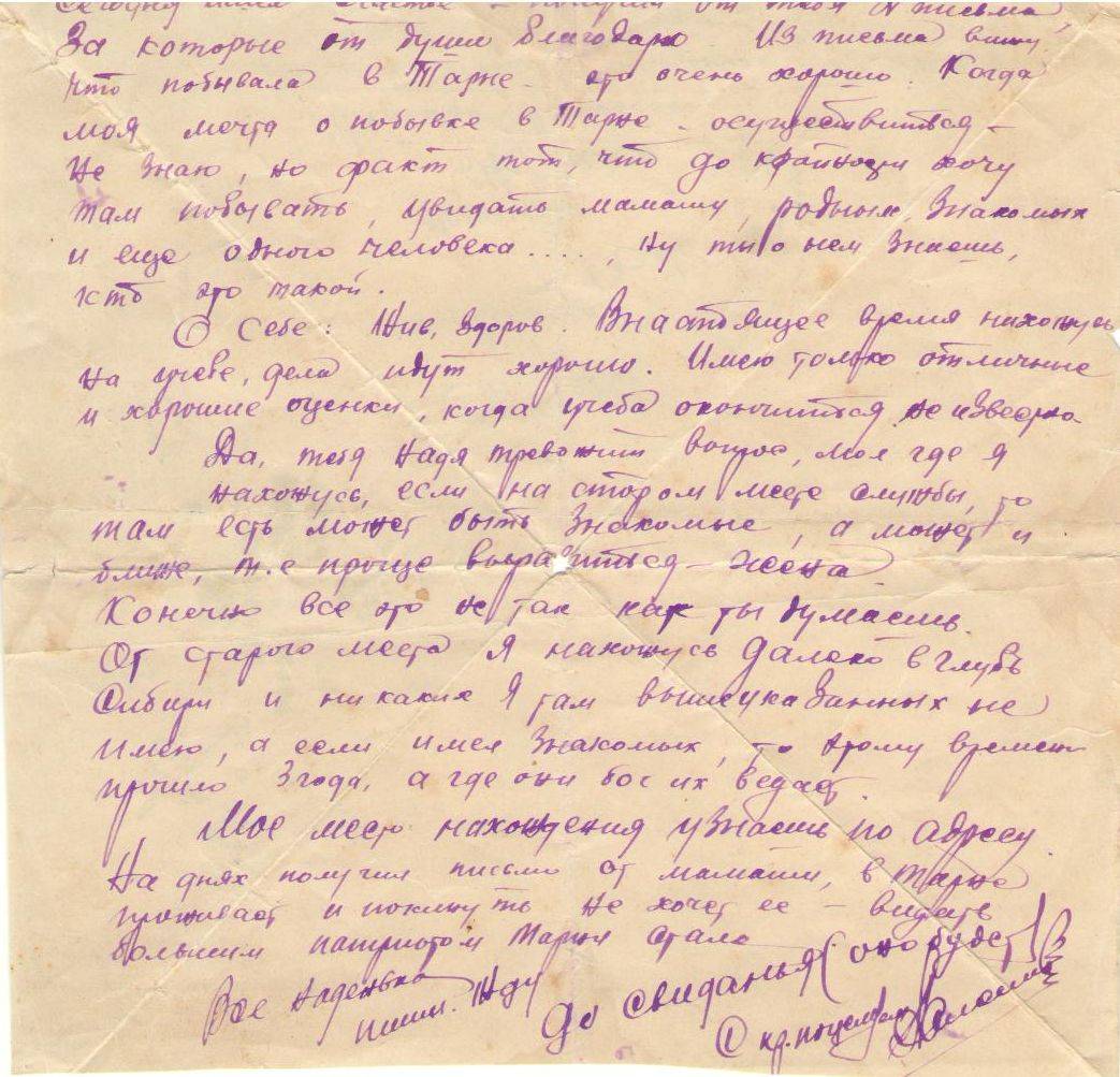 «О себе: Жив, здоров. Нахожусь на старой службе. Бьем немчуру».
